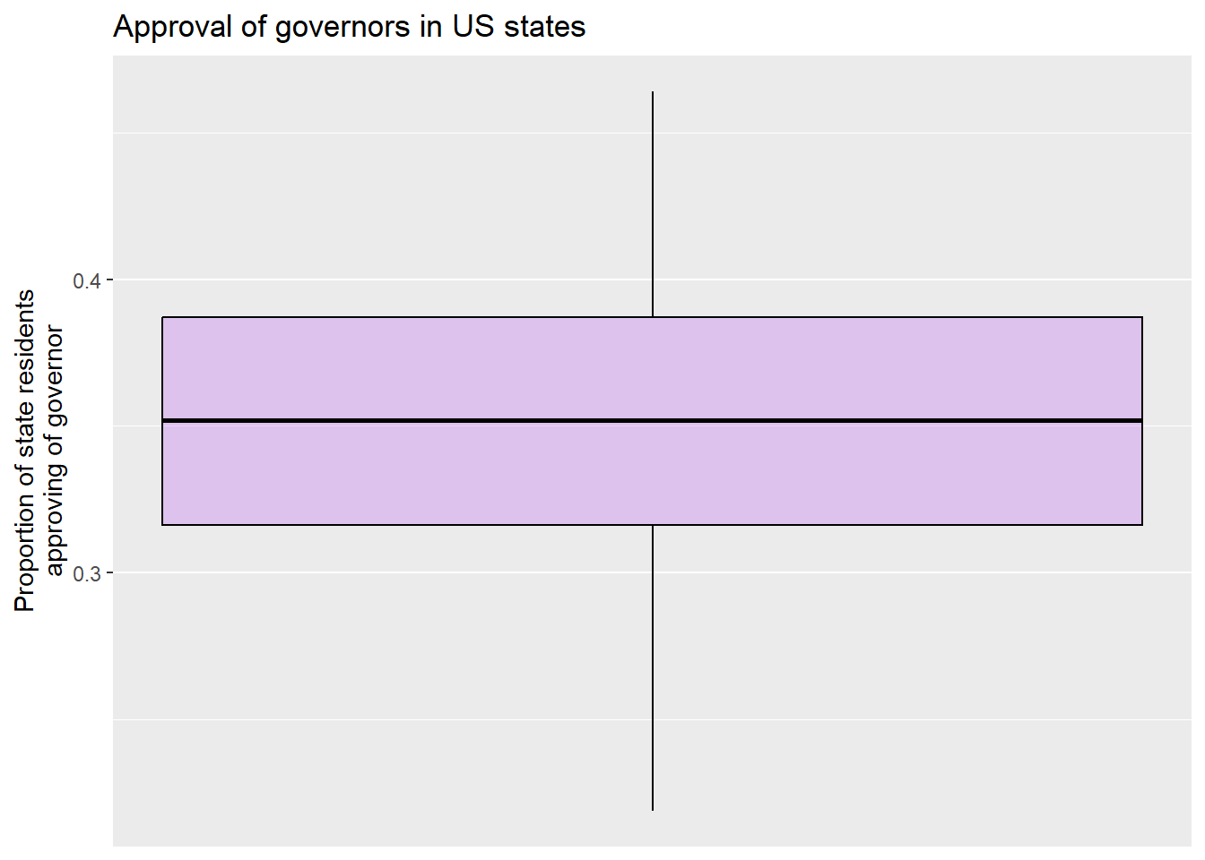 ylab("Proportion of state residents\napproving of governor")#the \n forces a second line in the axis title